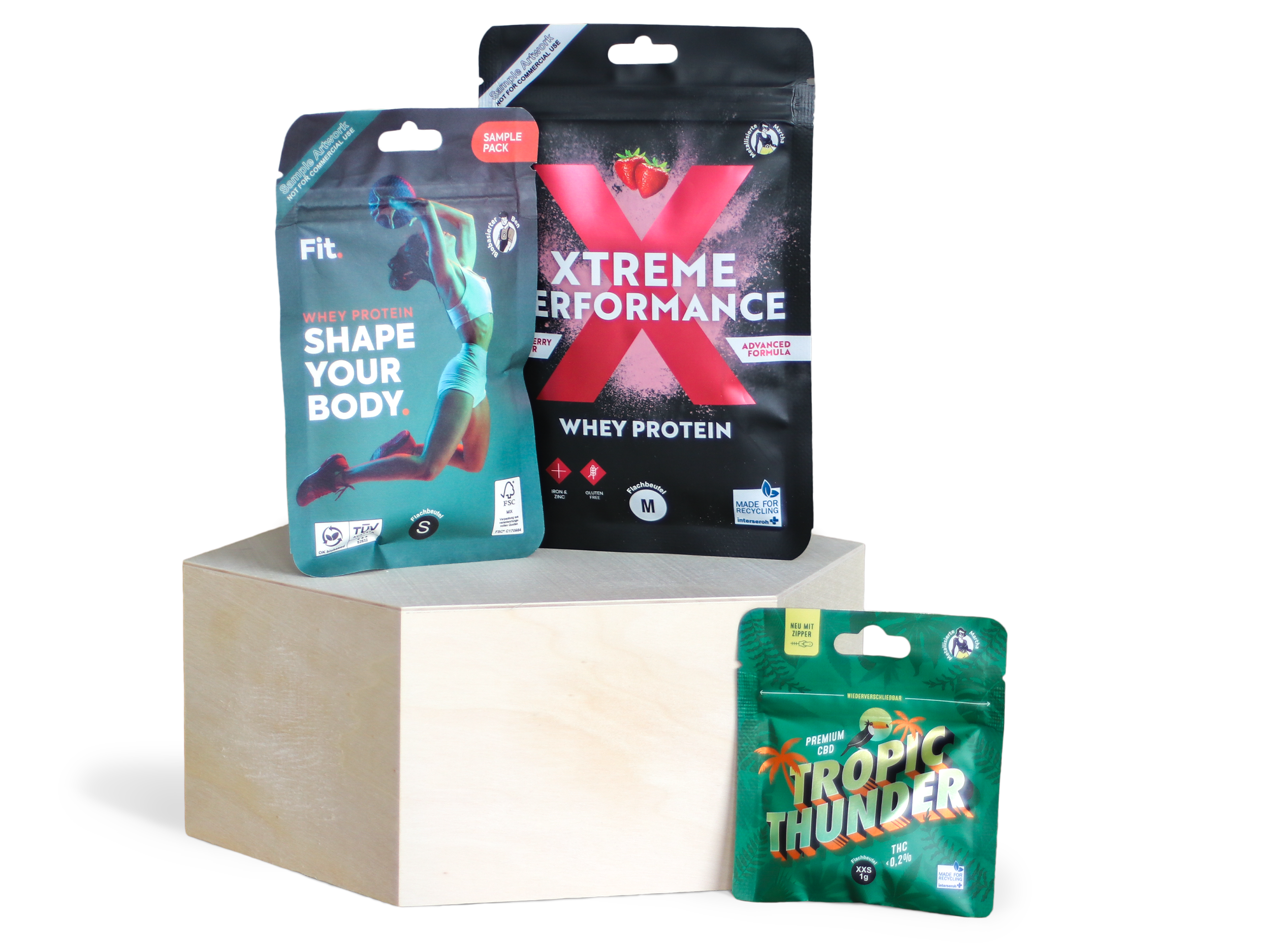 Dich erwarten drei unterschiedliche Verpackungsformen: Funktionale Standbodenbeutel, standfeste Blockbodenbeutel und platzsparende Flachbeutel.