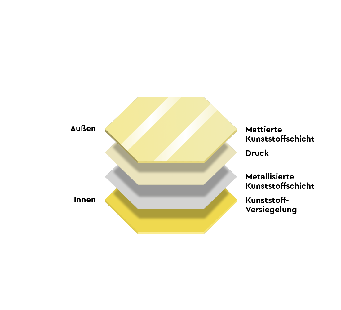 Im Inneren unserer Beutel befindet sich eine dünne metallisierte Innenbeschichtung. Diese garantiert einen guten UV-Schutz für besonders lichtempfindliche Füllgüter wie Kaffee, Tee, Gewürze oder CBD.