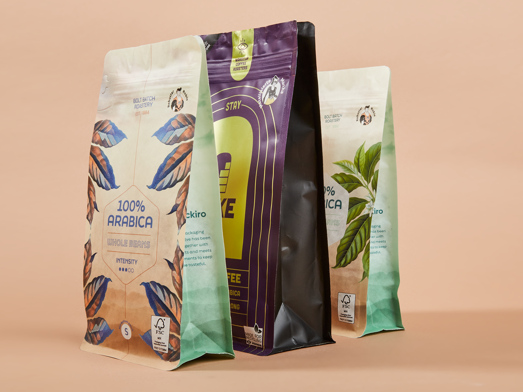 Mit unseren Kaffeeverpackungen glänzt du im Kaffeeregal und setzt gleichzeitig auf die nachhaltigste Verpackung mit bestmöglichem Schutz für deine Kaffeebohnen!