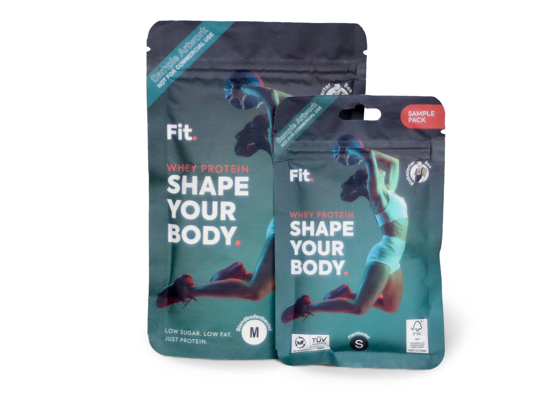 Sports nutrition and supplements can be filled into all the pouches we offer. The reason for this is that all companies involved in the manufacturing process are BRCGS Packaging certified. This ensures that your packaging is food-safe. We recommend a material structure with excellent UV and moisture protection, such as our Metallised Martha or Robust Robin materials.