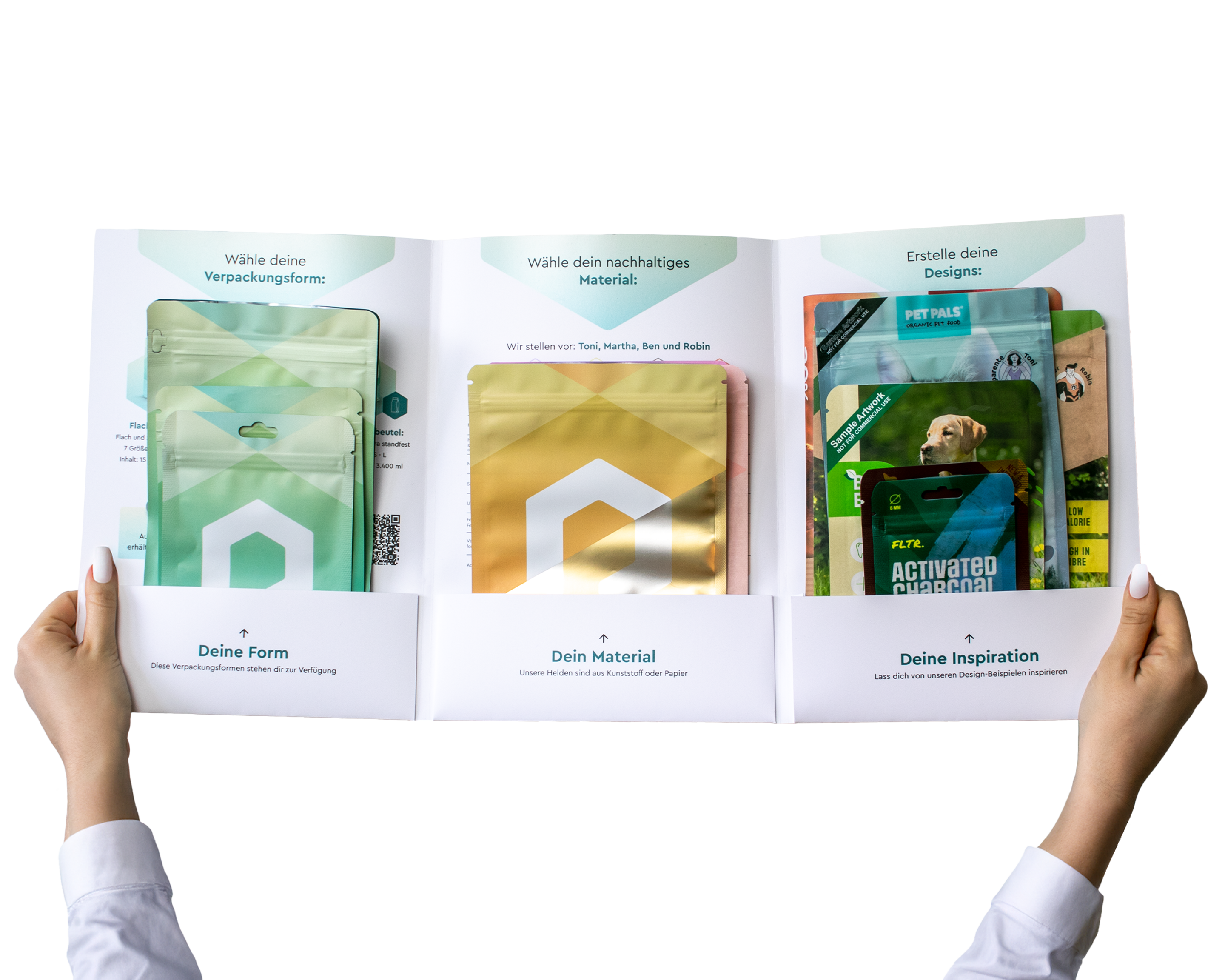 Procure-toi dès maintenant nos kits d'échantillons et découvre la durabilité qui se cache derrière chaque fibre. Tu recevras différentes formes de sacs, matériaux et tailles. En quelques jours seulement, tu recevras les échantillons et tu pourras commencer à les tester et à les remplir.