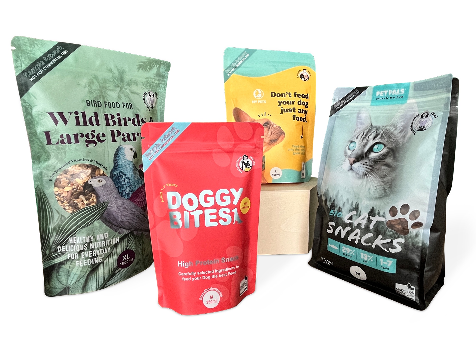 Laissez libre cours à votre créativité et imprimez nos emballages souples de manière individuelle à partir de 500 pièces par design. Grâce au toucher de haute qualité et à vos designs uniques, vos clients ne pourront plus quitter vos produits des yeux et seront obligés de les prendre.