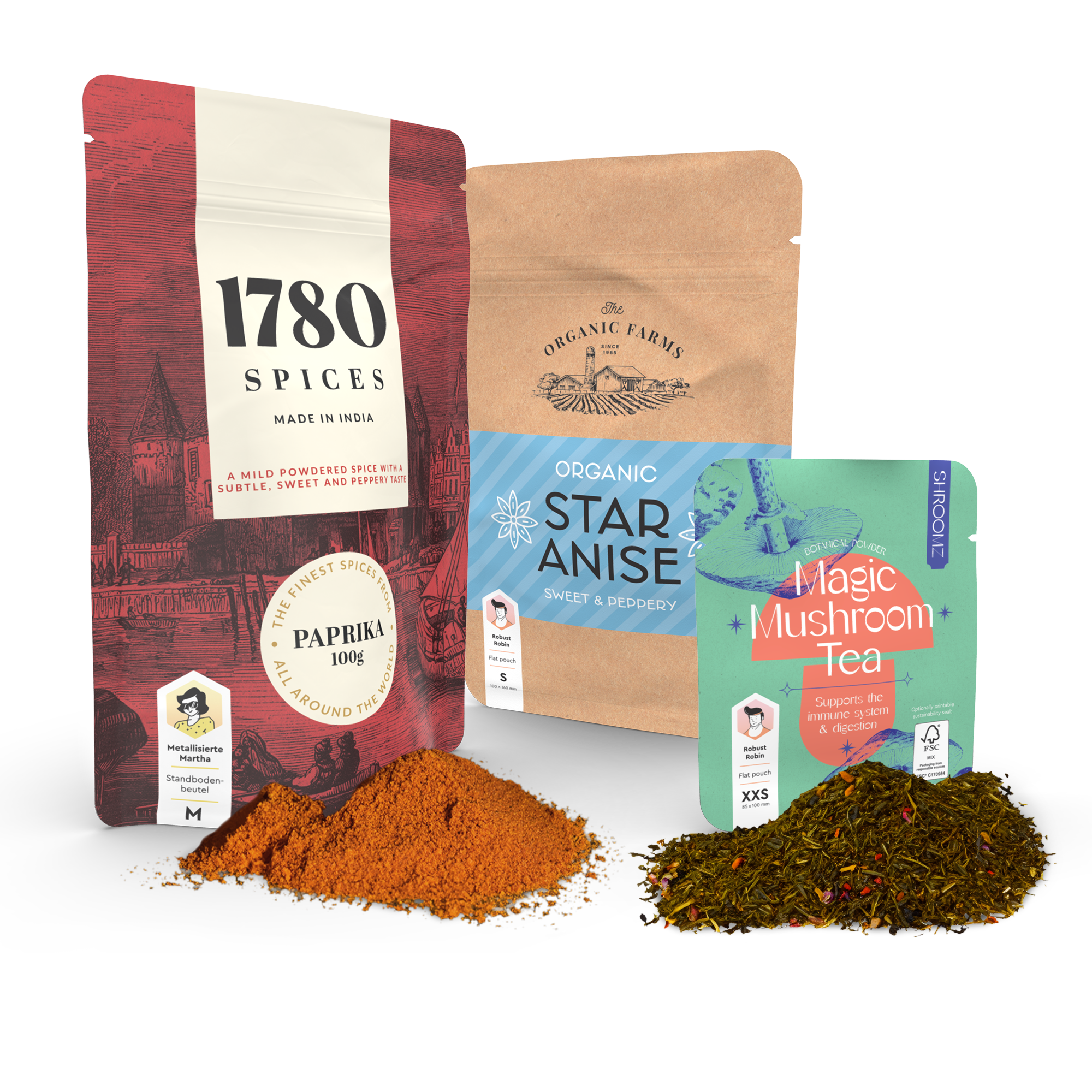 Nos emballages d'épices ne sont pas seulement une protection, mais aussi une déclaration. À partir de 500 unités/visuel, tu peux exprimer ta créativité avec un visuel accrocheur et un "look and feel" de haute qualité qui convainc dès le premier coup d'œil.