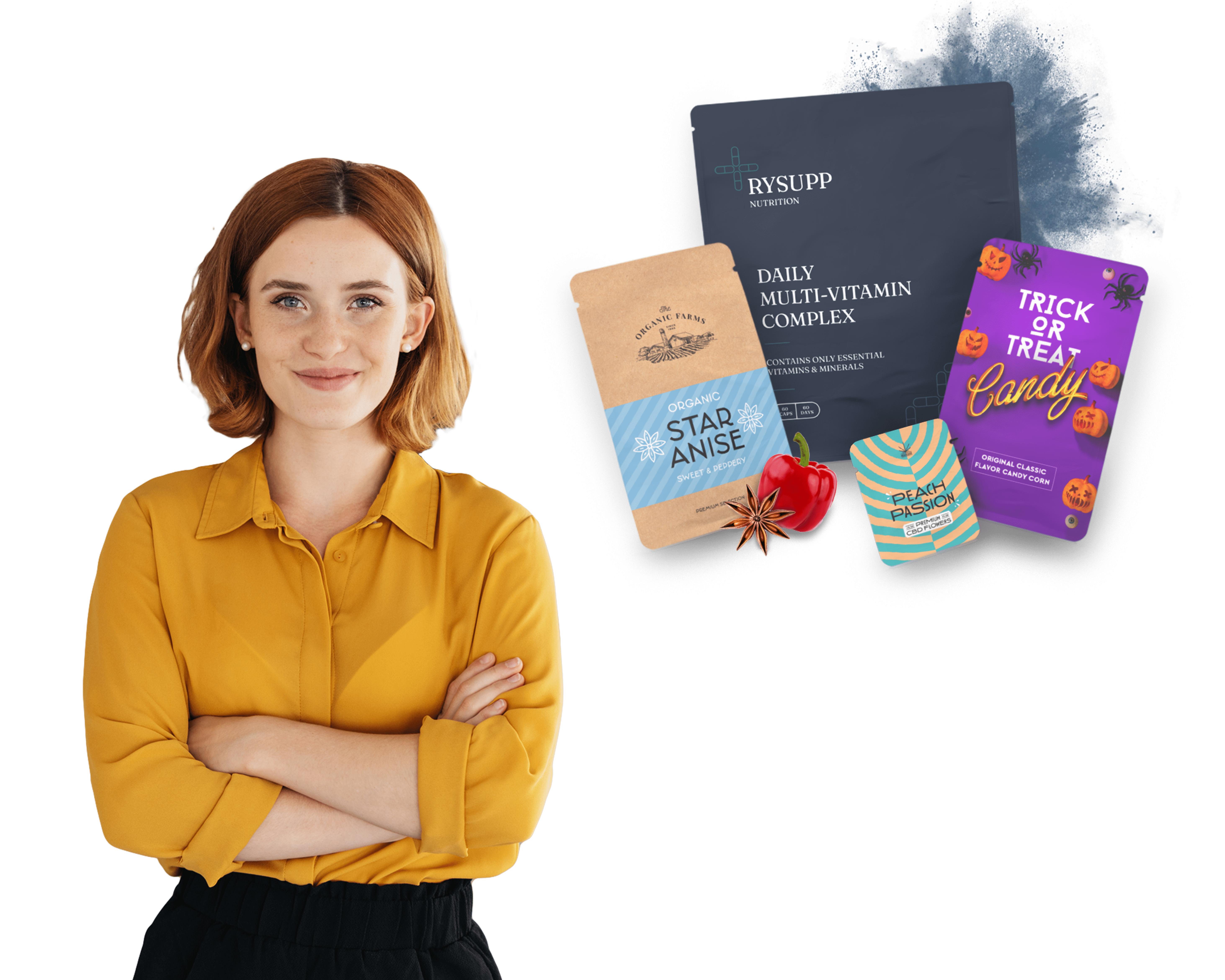 Les emballages souples imprimés, comme les sachets à fond plat imprimés, sont particulièrement adaptés à la conception d'emballages personnalisés, car ils vous offrent une grande surface de création. Votre marque et votre message ont ainsi plus d'espace et peuvent avoir un meilleur impact. Sur les bocaux, les boîtes ou les emballages non imprimés, vous n'avez en revanche qu'un espace limité pour l'impression & la personnalisation sur les étiquettes ou les banderoles.