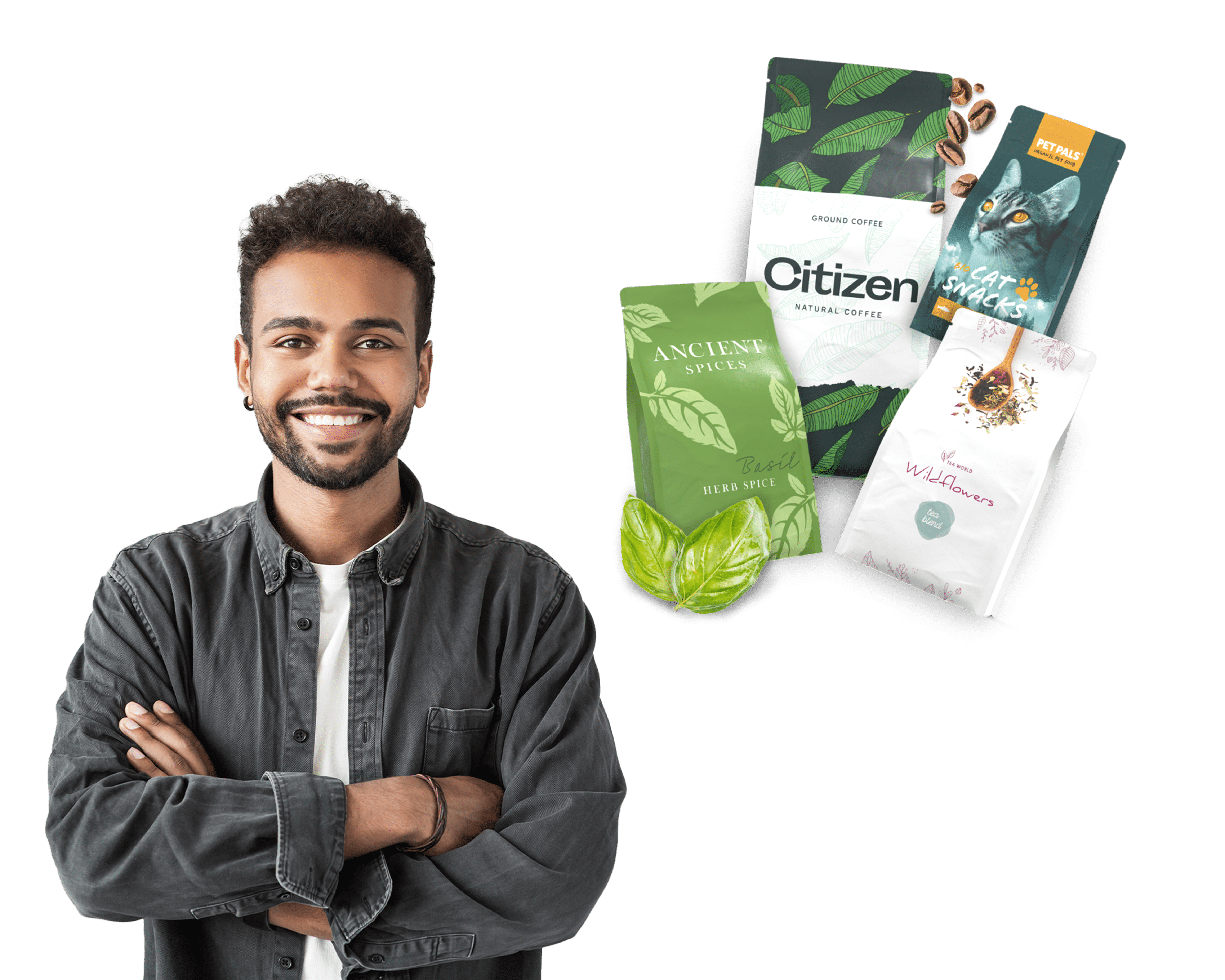 Voulez-vous un sachet imprimé qui mette votre produit en valeur de la meilleure façon possible ? Avec cinq surfaces imprimables et notre sélection d'effets spéciaux créatifs, ce n'est pas un problème : imprimez vos effets et donnez à vos sachets un aspect naturel en papier kraft, ou encore mettez votre produit en scène avec des fenêtres ou des reflets brillants. Les effets peuvent être choisis librement et sans frais supplémentaires.