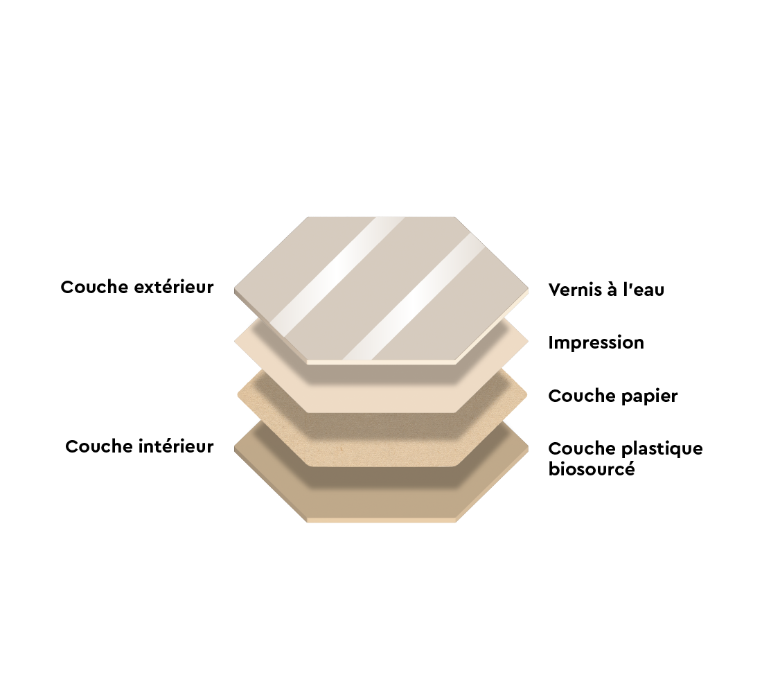 Nos emballages biosourcé peuvent être imprimés sur toute leur surface à partir d'une quantité de 500 pièces. Les surfaces peuvent être conçues dans un aspect mat de papier kraft, de sorte que vos clients remarquent immédiatement l'emballage dans le rayon des produits !